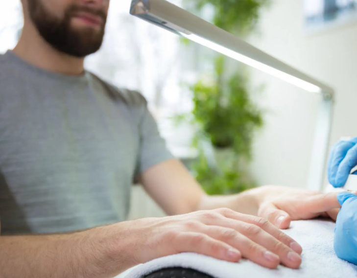 A clean, professional manicure tailored for men. Neatens nails, softens cuticles, and leaves hands looking well-groomed and refreshed.